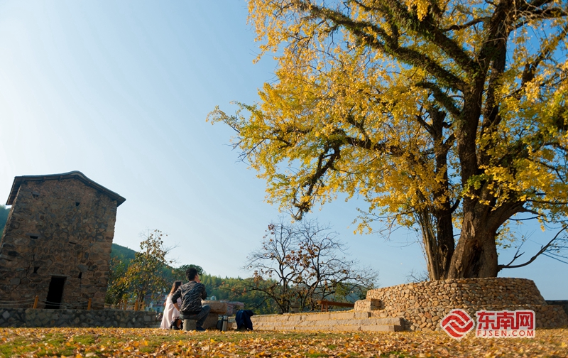 “夫妻”银杏树旁是一座修建于清末的古炮楼。东南网记者 林婕 摄 _ueditor_page_break_tag_