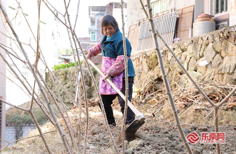 一名农妇正在自家门前耕作。东南网记者 林婕 摄 _ueditor_page_break_tag_
