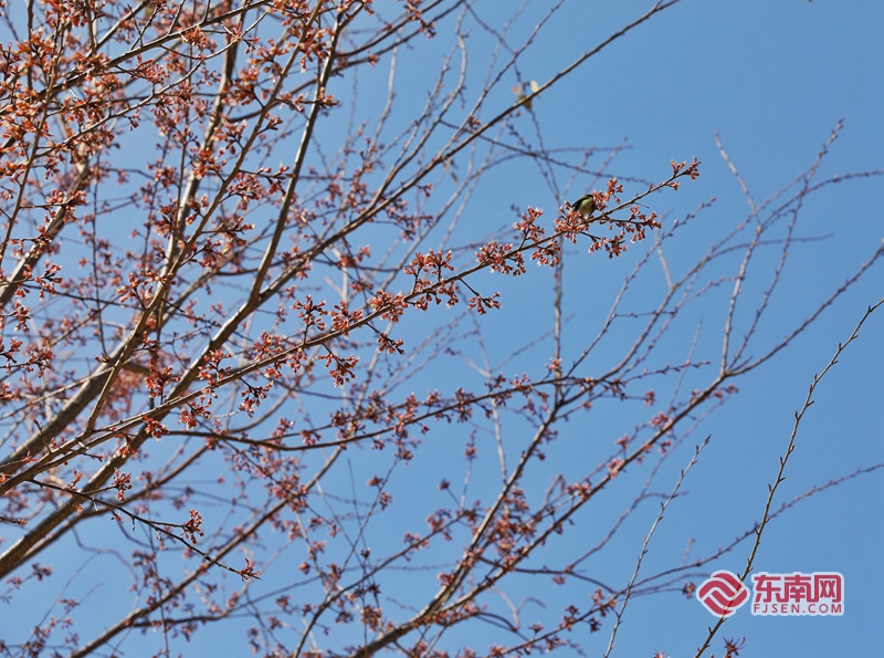 含苞待放的樱花树与万里无云的蓝天相映成画。东南网记者 林婕 摄 _ueditor_page_break_tag_