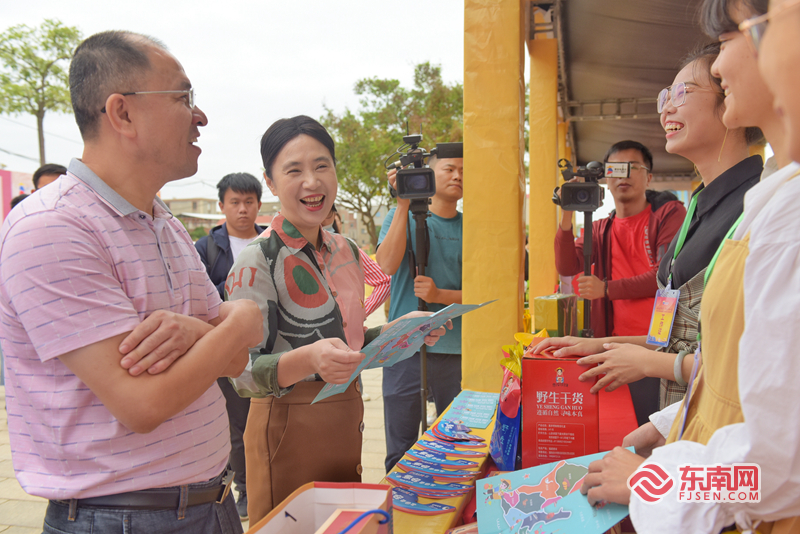 启动仪式后,主持人以直播带货形式逛展位,与展位商家互动交流,直播宣传革命老区风土人文,通过镜头向广大网友推介惠安好货,分享当地决战脱贫攻坚、推进乡村振兴的成果。展位上,紫苏茶叶、有机水果、海洋产品、花草植物……各类产品应接不暇。