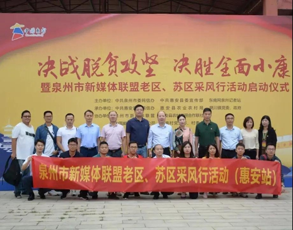 10月16日上午“决战脱贫攻坚、决胜全面小康”暨泉州市新媒体老区、苏区采风行活动在惠安正式启动。接下来,采风行活动还将走进永春、德化等地,通过形式多样的融媒体产品,积极推介当地农特产品、旅游资源、产业政策,助力脱贫攻坚。