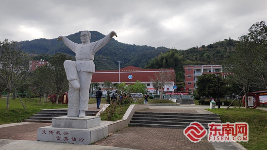 仙岭村文化广场设立的白鹤拳雕像。东南网记者 林杰 摄
