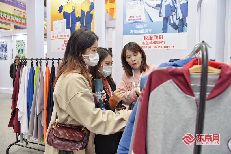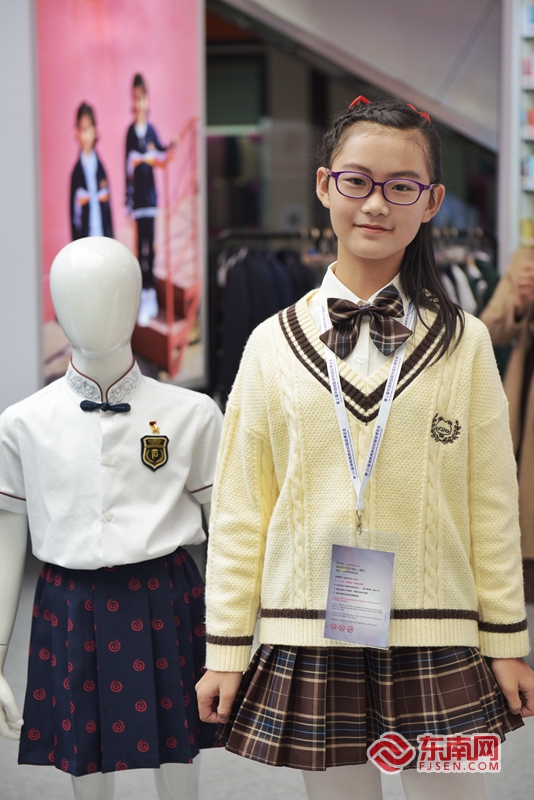 展会现场的校服款式和颜色十分丰富。东南网记者 林婕 摄 _ueditor_page_break_tag_