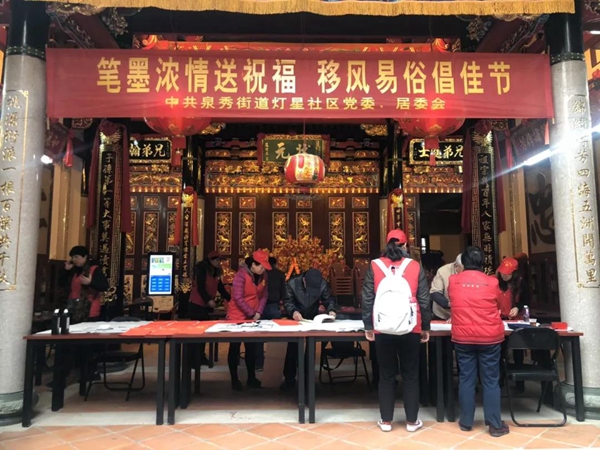 革除陋习 弘扬时代新风行动 为推进移风易俗、建设文明新风,灯星社区通过多渠道征集移风易俗工作意见和建议,立足社区实际,制定“移风易俗”居规民约,对红白喜事的酒席规模、喜庆拱门、治丧阵头、普度民俗等,进行限量界定,勇“破”陋习,狠刹“大操大办”、互相攀比、借机敛财等不正之风,带动社风民风向上向善。坚持“硬条件”和“软条件”两手抓——一手抓阵地建设长效化和一手抓宣传教育常态化,比如将浦西庄氏祠堂设置为小区图书馆,利用各类特殊日子,开展主题教育活动,有效渗透到居民生活之中,增强群众勤俭节约、反对铺张浪费、文明操办红白喜事、抵制陈规陋俗和封建迷信的自觉性,努力做到有目标、有成效,让群众看得见、摸得着。