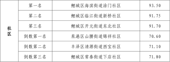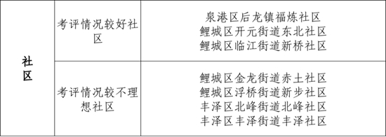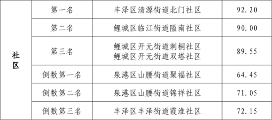泉州开发区崇闽街、鲤城区开元街道新华北路、丰泽区泉秀街道泉秀街卫生保洁到位、秩序良好。考评成绩在90分及以上19段,80分区间61段,70分区间8段。鲤城区老城区开元街道和鲤中街道总体保持稳定,临江、海滨街道有所下滑;江南街道池峰路二期整治成效不佳,路面浮土问题尤为突出。丰泽区考评成绩总体较好,常态化保洁工作落实到位;清源街道环卫作业质量和丰泽街道市容秩序管理力度均有所松懈。洛江区双阳街道秩序管理水平进步较大,但万安街道环卫作业质量明显下滑,保洁问题频现。泉港区峰尾镇进步明显,但后龙镇市容秩序管理力度尤为薄弱,整治成效未显现。泉州开发区考评成绩有所提升,但部分路段地面脏污和垃圾未清理问题长期未得到有效整改。 社区项目