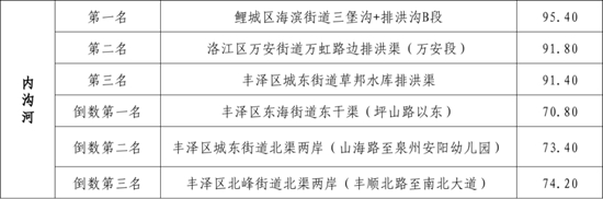 大部分集贸市场日常管理工作常态化开展,其中丰泽区环山市场和圣茂菜市场、鲤城区金山市场市容秩序良好,考评成绩靠前。但个别市场在精细化管理上仍有所不足,摊位内垃圾清理不及时、过道占道经营、杂物乱堆放、水产区未使用规范宰杀台、地面脏污、湿滑等问题并存,如丰泽区后坂市场、丰泽区滨城农贸市场、泉港区明华市场。 内沟河项目