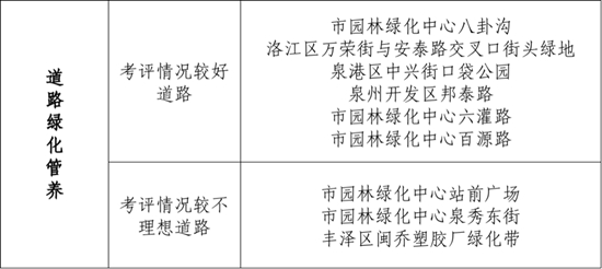 大部分集贸市场日常管理工作常态化开展,其中丰泽区环山市场和圣茂菜市场、鲤城区金山市场和聚宝社区便民市场垃圾清扫及时,市容秩序良好,考评成绩靠前。但部分集贸市场监管力度不足,常态化保洁机制不完善,高峰期保洁力度不够,秩序管理不严。责任区保洁不到位、越摊经营、杂物乱堆放、设施污损,熟食摊“三防”“三戴”落实不到位,地面脏污、便迹、设施脏污破损、“四害”防制不到位等问题并存,如泉港区田里市场、丰泽区后坂市场和滨城农贸市场。 道路绿化管养专项及道路绿化环卫作业质量考评情况