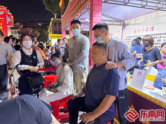 活动现场。东南网记者 林婕 摄 东南网11月16日讯(本网记者 林婕)为进一步弘扬中医药文化,发挥中医药在维护人民群众健康中的重要作用,彰显古城中医药文化独特魅力,11月16日晚,首届刺桐中医药文化集市在泉州市区府文庙举行。 华灯初上,记者来到市集现场,只见人头攒动、热闹非凡,市民排队相约推拿针灸,体验中医养生。据介绍,本次集市共分为中医专家义诊咨询区、中医适宜技术体验区、智慧中医体验区、药食同源“老字号”展示区、中医药文化科普区、传统医药类非遗展示区六大区域,为市民打造了一场集知识、体验、健康于一体的中医药文化盛宴。 在中医专家义诊咨询区,来自泉州市中医院、泉州医学高等专科学校附属人民医院、泉州市正骨医院等医院、医馆的名医专家现场坐诊,答疑解惑,免费提供中医内科、皮肤科等中医药健康咨询和诊疗服务;中医适宜技术体验区提供刮痧、耳穴压豆、穴位贴敷、火龙罐、温阳罐、平衡火罐、颈肩按摩康复、针灸、正骨整脊、儿童保健推拿等中医特色技术项目,让市民朋友亲身体验中医药非药物疗法的独特魅力;在智慧中医体验区,现场设置中医体质辨识分析系统,为市民群众提供自助式问诊、脉诊、望诊服务。 _ueditor_page_break_tag_