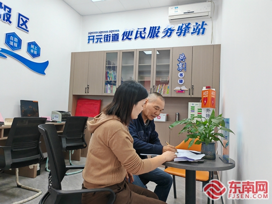 “帮代办”工作人员与老同志一起填写《业主委员会备案表》。东南网记者 施远圻 摄 东南网11月27日讯(本网记者 施远圻)“您好,这边填写一下业委会委员们的基本情况,包括家庭住址、职务等信息……”最近,在泉州市鲤城区开元街道便民服务中心内,经常能看到街道“帮代办”工作人员指导前来办理业务的居民填写《业主委员会备案表》。 原来,为进一步推动小区治理、落实住宅小区长效管理工作,这阶段,开元街道积极推进红色业委会组建及物业管理区域合并等工作,逐步提升小区治理水平。“组建红色业委会需要到街道备案,考虑到不少业委会成员为老同志,我们要求‘帮代办’工作人员靠前服务,协助有需要的老同志们填写、准备相关文件材料。”开元街道便民服务中心主任林雅芬介绍道。 年过七旬的袁钢是泉山社区希夷邮电小区业委会主任,为了组建红色业委会,他们不仅需完成组织召开小区业主大会、选举业委会委员、对业委会委员名单变更等多项工作,还需要填写多个表格材料。这些看似简单的文件准备、材料填写工作,对于有老花眼的老同志们而言是有一定难度的。 _ueditor_page_break_tag_
