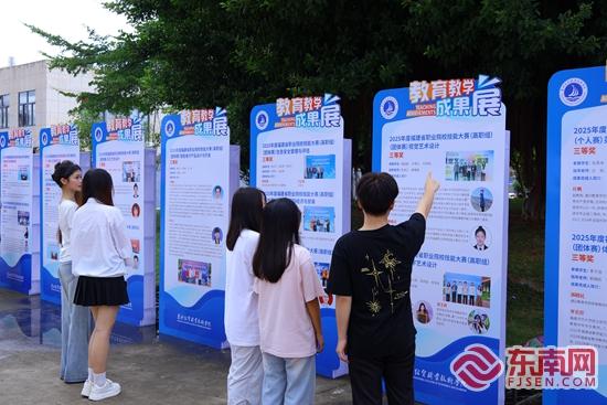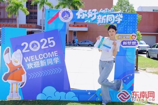 新生领取学校文创品。陈慧琦 摄 今年18岁的贵州女孩曹浪就读该校经济管理学院,一进校园便被热闹的迎新氛围给惊喜到,办完手续后便带着行李参加活动、领取文创品。“开学前我就通过学校官微知道有这个活动,让我们感觉到学校对我们的用心。我最喜欢那只吉祥物,感觉萌萌的,很有亲和力。”曹浪说。 无独有偶,来自福清的林凯也非常喜欢学校赠送的文创品,他最喜欢的是笔记本上印着的八字校训。在入校前,他就对自己未来三年有了明确的规划,他打算好好学习、践行这八字校训,三年后能成功考取心仪的本科院校。 儿子在一旁兴致勃勃地参与迎新活动,林凯的母亲林女士则驻足于学校精心布置的“2025年教育教学成果展”前。展板上的各类奖项和扎实的育人成果,让她更放心。她笑着告诉记者:“看到这些,我对孩子未来三年在这里的学习和生活,充满信心。” _ueditor_page_break_tag_新生观看教学成果展。周钰莹 摄 不仅如此,该校在迎新服务上也做足了“线上功夫”。为了让新生更快融入校园,学校官方微信公众号精心打造了一系列贴心栏目:从新生大数据、报到指南到实用贴心的防蚊提示,从开学活动预告到2025级辅导员和新生风采展示,还有“学长学姐说”等专题策划——这些内容不仅覆盖了校园生活的方方面面,更在细微之处传递着人文关怀,持续拉紧家校之间的“连心线”。 “接下去,学校还将推出一系列融入专业特色和新生需求的入学教育活动。各二级学院将量身定制专业认知课程和校园适应指导,学校各部门也将协同开展形式多样的育人活动。”林仕晖告诉记者,通过不同方式、全方位助力2025级新生从“迎新”走向“迎心”,真正实现从陌生到熟悉、从融入再到成长的跨越。 _ueditor_page_break_tag_