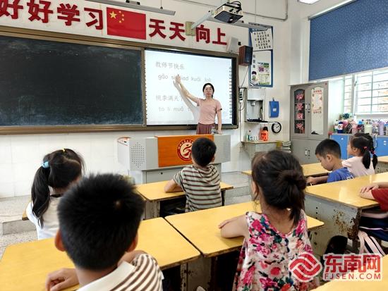 教师节前夕,鲤城区第五实验小学一年级孩子们学用闽南语说“教师节快乐”。学校 供图 “我听了3遍就学会用闽南语说‘教师节快乐’,感觉也不是那么难,挺好学的!老师听完我们说闽南语都笑得很开心,身边的小伙伴有很多会说闽南语,我也想多学一些,以后好跟他们一起玩。”张雨昕告诉记者。 “听到这些小小‘新泉州人’们用闽南语给我们送祝福,我们是很开心的。像我们这么一所外来务工人员子女较多学校,开设闽南语课难度比较大,孩子们有这样的小突破,很不容易,对于我们来说这就是最好的教师节礼物。”负责“空中闽南语课堂”的老师陈雅斯告诉记者,她也会继续在学校广播中,用闽南语和同学进行交流互动。