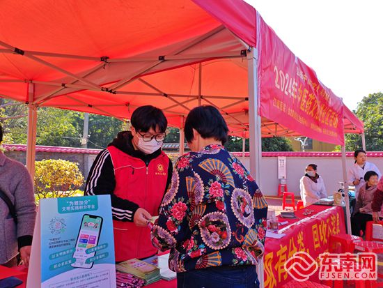 志愿者向居民介绍“为鲤加分”文明实践积分平台。东南网记者 施远圻 摄 |