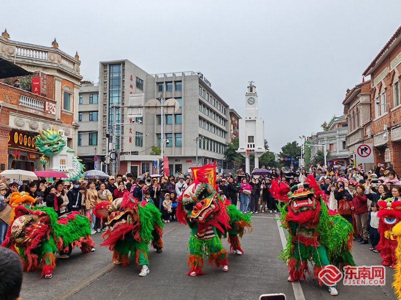 青狮队在钟楼前表演,让市民游客感受传统文化的魅力。东南网记者 施远圻 摄 _ueditor_page_break_tag_