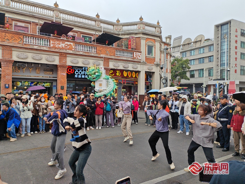 来自福师大的学生们现场表演融入拍胸舞舞步元素的舞蹈。东南网记者 施远圻 摄 _ueditor_page_break_tag_