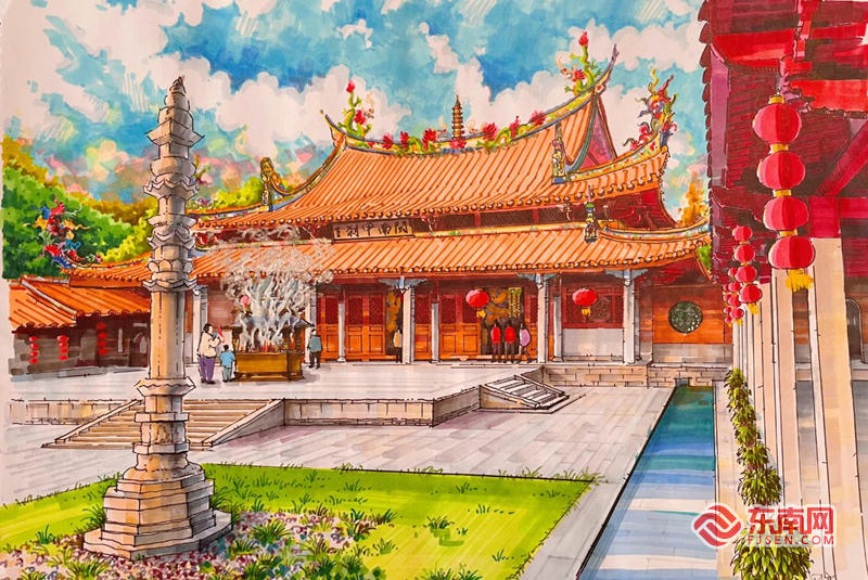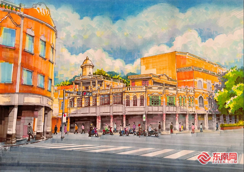 中山中路。小罗 绘 东南网1月20日讯(本网记者 施远圻 通讯员 许培吟 丁诗琳)西街、金鱼巷、泮宫、威远楼……近年来,泉州古城city walk持续掀起热潮,越来越多市民游客走上街头,感受古城的烟火气。泉州青年画家小罗也是其中一员,他带着画笔,走进古城大街小巷,用绘画记录古城风貌,而他更为人熟知的另一个名称是“画城记”。 小罗今年38岁,是土生土长的鲤城人,目前从事销售工作,大学时曾在园林建筑设计方面有所研究,对绘画也颇有兴趣。“我从小在鲤城长大,对古城有着深厚的感情,希望用自己的方式来记录古城。”谈及创作“画城记”初衷,小罗说随着女儿一天天长大,他想要为女儿的童年留下一段有意义的回忆,加深她对家乡的感情。 2022年10月,小罗的女儿升入小学,“画城记”也随之诞生,并正式入驻抖音、小红书等平台。一年多来,小罗带着女儿漫步古城,一起捕捉有趣的场景,观察古城各类建筑,在他的画笔下,既有钟楼、中山路、天后宫、威远楼、承天寺等古城地标性建筑,也有罗克照相馆、侨乡商品街、侨光电影院等老店老街。 随着城市更新的推进,如今的古城,和小罗记忆中的有些不同,却也激发了他更多创作灵感,“2011年的时候,我画了一张西街的草图,十年后,我才为这张图上色,灵感来自一个雨过天晴的傍晚,我在西街见到了很美的晚霞。”小罗表示,创作作品前,他会提前查阅资料,了解相关建筑的人文历史,再结合自身记忆以及想象进行创作,在这一过程中,对古城的文化底蕴也有了更深的思考。 小罗不仅画古城,还会拍视频。每一次外出采风,他都会用手机拍摄记录,并将最终绘画作品和现实场景对比,简单剪辑后再发布。纵观“画城记”发布的40余个视频作品,其实并没有什么酷炫的镜头语言或者剪辑技巧,但凭借着精美的绘画作品和朴实的情感,还是收获了不少网友的点赞和肯定。 “可以卖画了,裱起来!”“色彩搭配得太好了。”“我的结婚照就是在这里拍的。”……每一次,小罗都会认真看网友的评论,除了发自内心的赞美,还有许多网友表示,小罗的作品让他们回想起童年时光,勾起了他们内心深处的珍贵回忆和情感,“我的账号能坚持运营到现在,离不开大家的支持,大家通过我的作品找到与古城的情感共鸣,让‘画城记’的存在更有意义。”小罗有感而发。 去年10月,鲤城区融媒体中心联动“画城记”推出了“寻画记”活动。小罗选定了钟楼、泮宫、承天寺、威远楼等处,创作了12幅小画,并藏匿在古城各处。这一次,古城犹如一个神秘的“宝箱”,等待网友们去探寻、去发现、去开启。在和网友们的“隔空”互动中,小罗再次收获了感动和喜悦,“很开心大家喜欢我的画,愿意收藏我的画,希望更多人在漫游古城的过程中,能感受到它独特的风物人情。” 在“画城记”发布的作品中,常常能见到小罗女儿的身影。“每次外出采风,我都会带上她,给她介绍我小时候在古城发生的故事。”小罗表示,他希望这些记忆在女儿心里种下文化的种子,伴随着女儿长大成人,这颗种子会生根发芽,甚至长为参天大树,启迪着女儿去热爱并守护家乡文化。 |