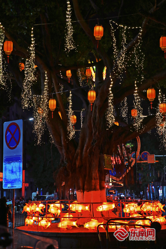 应景的“龙”灯。李莹 摄 东南网1月26日讯(本网记者 施远圻 通讯员 李莹)近日,不少细心的网友发现在鲤城区濠沟墘、威远楼等处有几棵大榕树,白天还“平平无奇”,一到晚上就华丽变身,偷偷换上璀璨亮丽的新装。吸引了不少市民游客拍照打卡,直呼古城过年氛围感十足,更有网友大胆预测,这将成为古城新的热门打卡点。 原来,今年春节期间,鲤城区委区政府精心打造街区亮化项目,在古城濠沟墘、威远楼等多处重点点位、街巷,围绕“海丝泉州 魅力鲤城”“遇见鲤”“闽南文化”等主题,通过特装亮化方式,“点亮”节日氛围、传递闽南文化,打造富有浓郁闽南年味的节日场景,重现“光明之城”璀璨夜景。 位于中山北路与镇抚司巷的交叉路口,三株大榕树亮化装置均已安装完毕。记者看到,靠南侧的两株榕树树干上缀满灯光,远看如点点星光,枝头还挂满了马尾灯、藤球灯;北侧的一株榕树枝叶间垂挂着许多马尾灯,随着榕树须在风中轻轻摇曳,沿街一侧的枝干上还有一个巍峨的龙头花灯,十分显眼。远远望去,龙头威风凛凛,连串的马尾灯、藤球灯则化为龙身,仿若一条巨龙盘旋在三株榕树间,格外瑰丽壮观。 “设计团队结合‘鲤跃龙门’的概念,树上盘旋的‘巨龙’和底部花坛环绕的鱼灯群相呼应,在光影中呈现出百鲤跃龙门的景象。”鲤城区委宣传部副部长黄丽玲告诉记者,树身设计还结合年轻人的喜好,设置了心形“遇见鲤”文字发光装置,同时也契合“鲤跃龙门”之意,预示新的一年鲤城发展也将如“鲤跃龙门”般取得新突破! 而在濠沟墘,伫立百年的古树也有了新变化,换上一身“赛博朋克”新装。夜幕中,树干通体发光,光线沿着树脉向上流动四散,变幻着红、黄、蓝、绿、紫等五种不同色彩,流光溢彩中散发活力。树坛四周,海浪造型的灯光闪烁流淌,搭配树上高高挂起的七彩绣球灯、暖色藤球灯,一眼望去绚丽繁华,科技感满满。“流动灯光和变幻的色彩,寓意着鲤城全面蓬勃、万事兴旺,经济充满活力,文化源远流长。”黄丽玲介绍道。 值得一提的是,为了保护古树,此次项目全程采用无钉安装,以铁丝加灯带缠绕的方式加以布置,并且全部采用Led编程冷光灯,不会发热发烫,不会对树木造成损伤。“冷光灯功率小,发光时不会产生热能,避免对周边环境造成光污染,也不会影响行车视线。”黄丽玲介绍道。 据悉,除了上述两个点位,位于濠沟墘与庄府巷交叉路口、文化宫公交停车场、朝天门、临漳门、学府路等处的亮化装置也正在调试,将于2月5日晚起全部亮灯。每个点位都有不同主题、不同光效,比如濠沟墘与庄府巷交叉路路口的“鲤好”主题、学府路的“遇见鲤”主题等,在扮靓城市夜景、造浓节日氛围的同时,也将为广大市民游客奉上一场绚丽的视觉盛宴。 _ueditor_page_break_tag_