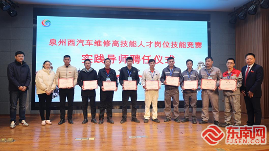 为实践导师颁发聘书。常泰街道 供图 “此次比赛水平较高,参赛选手需评估车身非结构件受损的程度、正确选择和使用维修所需的工具和设备进行修复。”裁判长屈治富介绍道,通过比赛也反映出一些实际问题,如损失漆面打磨不干净、损失压痕未完全消除等,选手在后续工作中需要注意提升维修技术。 根据比赛结果,总成绩第一名的选手吴煌冰被授予“鲤城区技术能手”称号;前7名获奖选手及“泉州西汽车维修高技能人才共建共享基地”校内负责人蒋清源、校外基地负责人卢鹏被聘任为“泉州西汽车维修高技能人才共建共享基地”实践导师。 此次比赛,促进泉州西区域内汽车维修行业整体水平的提升,为参赛选手搭建行业之间技能切磋与经验交流的平台。未来,泉州西汽车维修高技能人才共建共享基地也将继续秉持高标准、严要求,经常性开展技术培训、岗位练兵、技术竞赛等活动,持续打造具有鲤城特色的汽修赛事品牌,大力推进竞赛成果转化,形成梯次式的人才队伍,为人才高质量发展塑造新优势、开辟新赛道。 |