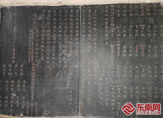 捐资者芳名录。黄凯杰 供图 东南网1月4日讯(本网记者 施远圻 通讯员 黄凯杰)“陈丰美捐银百贰拾员、陈泉山捐银捌拾员、黄世益捐银贰拾员……兴裕号捐银玖员、协泰号捐银捌员……”近期,正在修缮中的鲤城区熙春宫,发现了两方小小的石碑,经过相关专家校勘解读,揭开了熙春宫在大约200年前的修缮故事,以及一次鲜为人知的善举。 熙春宫位于鲤城区通政巷中段,建造年代已无法考证,清道光十五年(1825年)重修,历时三年竣工,宫庙大门处至今仍悬挂“熙春古地”匾额。据泉州市区方志学会顾问薛祖瑞介绍,熙春宫的宫名来自境名,是古城南隅阳义铺熙春境的境庙,宋朝有熙春坊,在好德坊南,即今通政巷口,明清时期用作境名。 走进熙春宫,正殿两侧嵌于墙壁上两方黑色石碑格外显眼;靠近细看,虽已历经近200年岁月,但碑文依旧清晰可辨。“由于年久失修,熙春宫早已不对外开放,两方清代道光年间的石碑也被灰尘掩盖。”通政社区党委书记、居委会主任陈淑华介绍,去年6月底,在新加坡华侨傅火德的支持下,熙春宫启动重修,两方石碑才得以“重见天日”。 _ueditor_page_break_tag_