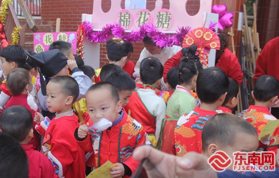 小朋友们俏皮可爱。高静瑜 供图 东南网1月6日讯(本网记者 施远圻 通讯员 高静瑜)舞龙舞狮队、火鼎公婆队、大唐仕女队、飞天队……1月6日上午,鲤城区东红幼儿园热闹非凡,新春游园踩街表演和别有趣味的新年游园活动充满浓浓海丝味,萌娃们在这场2024年“浓情中国年 欢喜逛庙会”活动中,边吃边玩边表演,感受迎新春的欢乐氛围。 为了让孩子们沉浸式体验泉州海丝文化,该幼儿园邀请了非遗项目进校园,泉州木偶剧团张育淳表演传统剧目《小沙弥下山》、“江加走木偶头”传承人黄雪玲展示木偶头作品、金苍绣传承人陈克忍让孩子们对刺绣有了初体验……此外,无美食不庙会,冰糖葫芦、棉花糖、腊八粥、面线糊、茶果子、宋式点茶等满足了萌娃们的味蕾,糖画馆还让萌娃们体验了一把糖画制作,围炉煮茶、搓冬至丸、滚了元宵圆、包饺子、印龟粿,浓浓的年味萦绕在游园活动的每个角落。 据介绍,今年庙会延续该幼儿园的传统,以“中国年”和“闽南民俗”为主题,让孩子在逛庙会的过程中,感受传统中国的年味文化,建立民族自信与文化自信,从小在心中埋下一颗爱祖国、爱家乡的种子。 _ueditor_page_break_tag_