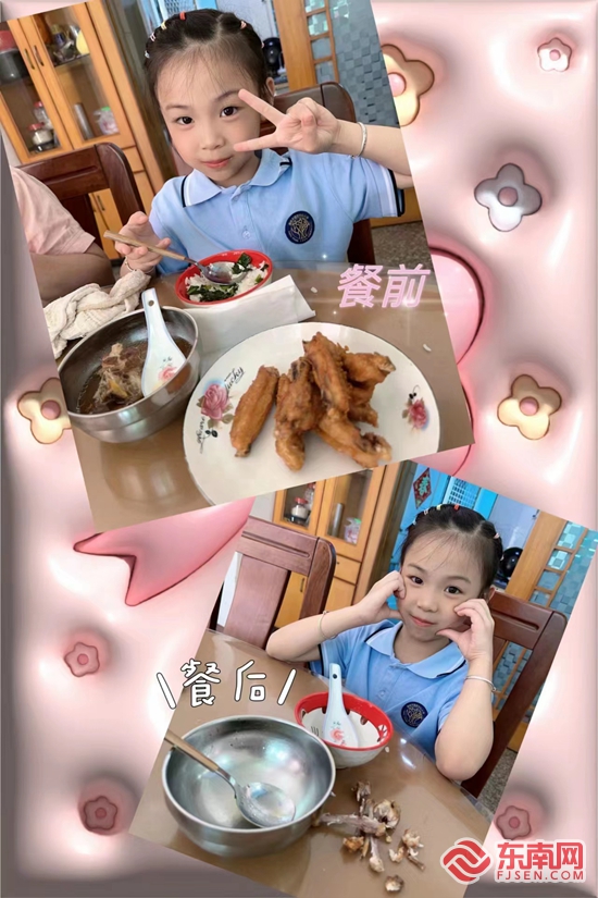 家长拍照并制作孩子餐前、餐后对比图。学校 供图 身教胜于言传!通过家校共育的方式,家长与老师们以身作则,践行“光盘行动”,教育孩子们拒绝“舌尖上的浪费”,从而真正促进孩子们逐步养成爱惜粮食的好习惯。 鲤城区委文明办未成年人思想道德建设办公室工作人员陈丽蓉表示,泉州市通政中心小学充分发挥好文明校园的示范引领作用,通过开展活动让孩子们树立珍惜粮食、反对浪费的观念,并引导家长带动孩子共同践行勤俭节约理念,培养厉行节约良好习惯,有利于推广文明用餐,传递文明新“食”尚。 |