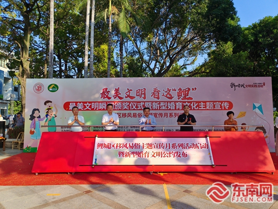 启动仪式。东南网记者 施远圻 摄 东南网10月16日讯(本网记者 施远圻)今天下午,泉州市鲤城区移风易俗主题宣传月系列活动启动暨新型婚育文明公约发布仪式在泉州市工人文化宫举行。 据了解,此次活动由鲤城区委宣传部、鲤城区委文明办、泉州市工人文化宫、鲤城区文联、鲤城区新时代文明实践中心、鲤城区计划生育协会、鲤中街道办事处联合主办,旨在宣传新型婚育文化,深化移风易俗,弘扬时代新风。