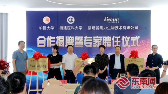 领导嘉宾共同揭牌。鲤城区招商办 供图 东南网10月25日讯(本网记者 施远圻 通讯员 许培吟)近日,记者从鲤城区招商办获悉,华侨大学医学院药学实践基地、华侨大学生物医学学院产学研(示范)基地、华侨大学分子药物研究院教研实践基地在海丝智能医疗创新港正式揭牌。 据了解,三个基地由福建省集力生物技术有限公司(简称集力生物)与华侨大学、福建医科大学合作建设。今后,三方将发挥各自资源优势,务实深化校企合作、产教融合,推动科技研发与生产制造相结合、学科链与产业链相对接,提高企业的自主创新效益,共同构建产学研联盟协同创新体系,为鲤城区高质量发展贡献力量。 当天,现场还举行专家聘任仪式,华侨大学医学院院长刁勇、福建医科大学转化医学研究院副院长刘合焜、福建医科大学第二附属医院中心实验室主任高宏志获聘为集力生物指导专家,他们将通过产学互补、资源共享,为企业提供专业技术支持,帮助企业解决更多难题,践行校企合作双向赋能,助推更多科技成果落地转化。 据介绍,集力生物于2022年入驻鲤城,在生物大分子浓缩、生物分离介质制备以及免疫分析方面拥有原创技术群,多项技术和产品可立即产业化。近年来,企业在鲤城投资建设集力生物产业项目,项目计划投资总额1.5亿元,目前已在鲤城区组建基础制备分析技术和家用诊断技术团队以及实验室,后续计划自建生物医药工厂,以进一步培育蛋白质和外泌体等生物活性药物,以及涵盖传染病、肿瘤和重大慢性病的工业制备及家用即时诊断产业,组建特色鲜明的分子诊断大产业链,打造开放多元的“产学研医”协同创新生态。 此次三个基地的正式揭牌,标志着集力生物产业项目取得重要突破,企业与华侨大学、福建医科大学的产学研合作迈上新的台阶。项目投产后,预计5年内申请国际国内专利数量不少于10个,发表国内外学术文章不少于10篇,开发具有自主知识产权医学检验产品不少于20种,力争3年内获省级重点实验室认定,投产后第四年起,预计新增税收超500万元。 |