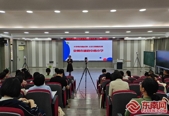 课堂教学观摩研讨活动。东南网记者 施远圻 摄 东南网6月14日讯(本网记者 施远圻)今天,泉州市2023年度“强质量、树品牌”小学教育教学开放暨“名优校+”教育发展共同体展示交流活动在鲤城区实验小学举行。 此次活动由泉州市教育局组织开展,旨在科学融合新思想,共培共育新态势。“今天的交流活动中,我们主要通过学生社团活动展示、课堂教学观摩研讨、专家讲座等形式,向同行们展示我校在‘名优校+’教育发展共同体建设的实践探索。”鲤城区实验小学校长蔡小青介绍道。 作为泉州市首批领办型中小学“名优校+”教育发展共同体建设的领办型学校,鲤城区实验小学携手共同体成员校——鲤城区第六实验小学,着力探索跨越时空限制、融通互促的新型教育发展共同体研修模式,尝试构建“常态研训—学科研课—名师引领”,通过“课例研讨”“教研沙龙”“专递课堂”等多元联动方式,提高共同体成员校研修的效度与力度。 在课堂教学观摩研讨活动中,鲤城区实验小学五年级数学教师陈汝婷通过“5G+专递课堂”,为本校以及鲤城区第六实验小学的学生们上一堂数学课。回答问题、课堂讨论、动手操作……相隔8公里的两校学生,一起学完《复式条形统计图》这一章节的知识,课堂学习氛围轻松活跃。 _ueditor_page_break_tag_