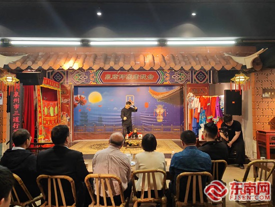 “阳光网格员”聘任仪式。东南网记者 陈诗婷 摄 随后的文艺晚会好戏连台,精彩纷呈。晚会在泉州市闽南歌舞传承中心的舞蹈《盛世华章》中拉开序幕,泉州市提线木偶戏传承保护中心带来的提线木偶表演《小沙弥下山》和市南音传承中心的南音表演《百年归巢》展示了泉州非遗文化的瑰宝,泉州师范学院软件学院带来的朗诵《百年征途》表达了对革命先辈的崇敬与缅怀之情……主持人还与现场观众进行党史问答互动,大家情绪高涨,踊跃抢答,现场气氛热烈。最后,全场合唱《爱拼泉州人》,纵情唱响对家乡对祖国的颂歌。