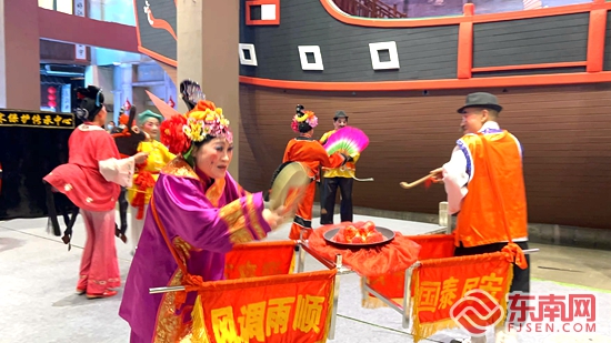 精彩的非遗表演。鲤城区政府办 供图 文化植入+热点塑造 强化特色文化宣介 城南庙会活动多形式突出展示城南文化、非遗文化,吸引各方广泛关注。 一是古戏台非遗展演。在天后宫古戏台分3天组织高甲戏、火鼎公婆、五祖拳、五梅花拳、刣狮、螳螂拳、南音等42场非遗展演,累计时长450分钟,让游客饱享戏曲艺术大餐,感受非遗魅力。 二是城南街巷名推广。精选涵盖美食、文创、非遗、伴手礼的28个摊位参与庙会,在摊位上悬挂写有聚宝街、青龙巷、万寿路、三十二间巷等彰显“城南风”街巷名旗帜。同时,专门制作城南街巷名印章分发给对应的摊位,并推出摊位消费打卡印章兑换礼品活动,让游客“一站式”满足吃喝玩乐的同时,微缩地“游览”打卡城南街巷,活动期间共有650余人完成印章打卡任务。 三是网红打卡热点塑造。借助春节网红“泉州兔兔”流量优势,安排以顶流“蟳埔簪花兔”为代表的“兔兔组合”入驻城南庙会中心点,并设置鲤城海丝家族成员“阿宝”(聚宝街)人偶、打卡立牌,以及20余块富含城南特色的打卡手举牌,吸引众多游客纷纷打卡拍照,在微信朋友圈、微博、抖音等平台自发宣传聚宝城南。 _ueditor_page_break_tag_