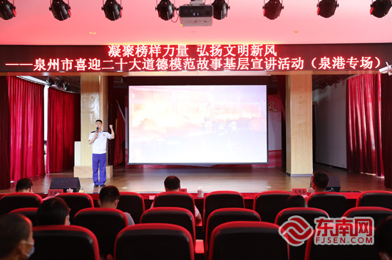 “感动泉港 道德之光”人物颁奖仪式。东南网记者 黄雨昕 摄 东南网9月28日讯(本网记者 黄雨昕)为深入开展道德模范宣传学习活动,广泛宣传道德模范、文明家庭、身边好人、最美人物、岗位学雷锋标兵等先进事迹,9月28日,“凝聚榜样力量·弘扬文明新风”——喜迎二十大道德模范故事基层宣讲活动(泉港专场)在泉港区东张村举行。 宣讲现场,由泉州市各级部门选送的宣讲员们齐聚一堂,采用丰富多彩的演讲形式,真情实感地向观众们讲述了《捧着一颗心来,换得一树花开》《久病床前有慈母》《我的班长——张晓杰》等一个又一个感人至深的道德模范故事。宣讲员们引导群众积极学习和弘扬道德模范的崇高品德,同时号召大家不断发现身边的好人好事,进行广泛宣传,使好人好事看得见、接触得到,更具有榜样性。 “道德模范就是一面旗帜,是我们学习的榜样,今天的宣讲活动十分有意义,让我们接受了传统美德的洗礼,受益匪浅!”参加此次活动的观众们纷纷表示,今后将以道德模范为榜样,树立正确的人生观和价值观,为建设美丽家乡贡献自己的一份力量。 近年来,泉港区涌现出了一大批道德模范和先进典型,其中3人获评全国道德模范提名奖,3人获评省级道德模范,16人获评市级道德模范,65人获评区级道德模范,来自各行各业的道德模范人物典型、事迹感人,集中展示了新时代泉港区各阶层的高尚品格和精神风貌。活动当天,相关领导还为第六届“感动泉港 道德之光”人物颁奖,勉励他们继续不忘初心、珍惜荣誉,继续发挥榜样示范作用,做崇高道德的践行者、文明风尚的维护者。 长期以来,泉州市委文明办高度重视精神文明建设,通过组织开展基层理论宣讲、道德模范评选等措施,大力培育和践行社会主义核心价值观,扎实推进公民道德建设,推进经济社会高质量发展。 _ueditor_page_break_tag_