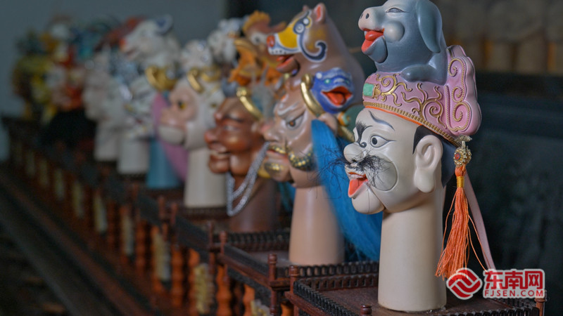 苏碰辉木偶头作品《十二生肖》。东南网记者 谢玉妹 摄
