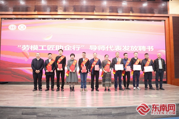 为“劳模工匠助企行”导师代表颁发聘书。黄丹萍 摄 为进一步发挥联创联建机制的聚合效应,泉州市总工会为“劳模工匠助企行”导师代表颁发聘书,为泉州市工匠型班组代表授牌,为2023年泉州市工匠工作室、泉州市(示范性)劳模创新工作室授牌。 泉州市总工会相关负责人表示,“劳模工匠助企行”是由工会搭桥,企业点菜、劳模工匠做菜、工会传菜的服务流程。劳模工匠要充分发挥各自技术专长和技能优势,带领企业职工广泛开展岗位练兵和“名师带高徒”,扎实做好传帮带,坚持问题导向,送技术、送良方,帮助解决“卡脖子”难题和产业发展共性难题,提高企业生产效率和市场竞争力。各级工会组织要聚焦全市千亿产业集群和重点产业链,找准目标、找准角度、找准资源、找准举措,让“劳模工匠助企行”专项行动成为工会引领广大职工建功立业的亮丽品牌。 _ueditor_page_break_tag_