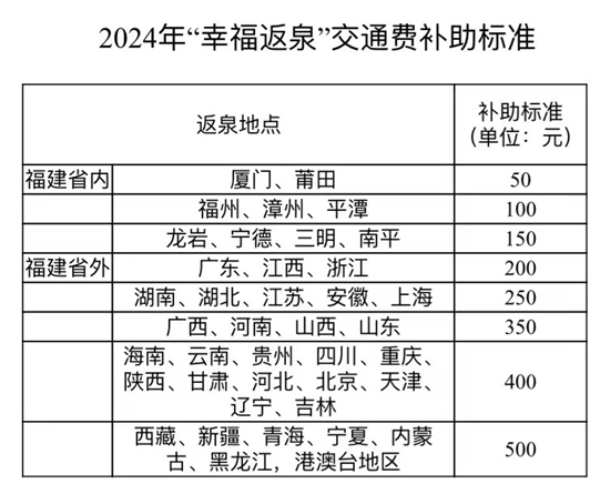 东南网1月24日讯(本网记者 施远圻 通讯员 许志馨)今天下午,记者从泉州市总工会了解到,2024年“幸福返泉”交通费补助活动即日启动,只要符合条件的职工,可申领50至500元不等的返程交通费补助。 本次活动参加对象为户口所在地为泉州以外的外来务工人员(机关、事业单位在编人员除外),并同时符合以下条件:非泉州户口(以身份证或护照记载为准);与用人单位建立劳动关系的职工,且未达到法定退休年龄;工会会员组织关系隶属于泉州市的基层工会,且职工所在工作单位按规定向泉州工会缴交工会经费;个人信息已被采集或录入至全市工会会员实名制数据库中;持有并激活“泉工惠”职工服务卡;职工本人在规定时间(2024年1月26日至4月30日期间),乘坐公共交通工具(包括火车、高铁动车、汽车、飞机、轮船等)从户口所在地或探亲地返泉或来泉的。