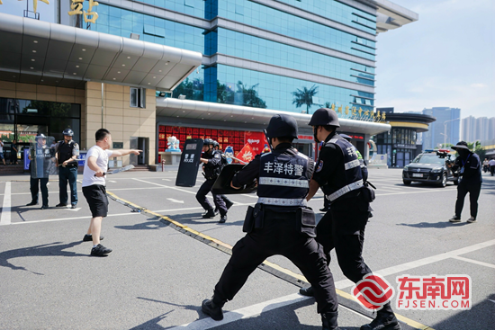 图为反恐演练现场,多部门联动成功制服持刀“暴徒”。泉州交发集团 供图 东南网6月25日讯(本网记者 谢玉妹)未购票男子持刀欲强行上车、客运车辆突发火情……6月25日上午,一场惊心动魄的实战演练在泉州客运中心站展开。泉州市交通运输局联合泉州交通发展集团有限责任公司举办2025年“安全生产月”反恐暨客运车辆火情应急处置演练,通过模拟真实场景,检验多部门协同作战能力,为城市交通织密“安全防护网”。 演练以“实战化”为导向,聚焦“应急处突”与“车辆火情处置”两大核心场景。在反恐演练环节,一名“暴恐分子”试图强行上车并持刀威胁工作人员,车站反恐组迅速响应,穿戴防刺服、携带装备展开围追堵截。民警第一时间划定警戒线隔离无关人员,特警随后赶到现场,凭借专业战术果断制服“暴徒”,整个过程行云流水,展现出高效应急处置能力。 火情处置演练中,客运车辆刚驶出车站便“突发险情”—— 驾驶员发现车底冒烟后,立即启动应急程序:组织乘客有序疏散、清点人数、使用车载灭火器灭火,并在车辆后方设置三角警示标志。面对失控火势,驾驶员迅速报警并向公司汇报,义务消防员与专业消防救援力量紧密配合,最终成功扑灭明火,将损失降至最低。 _ueditor_page_break_tag_