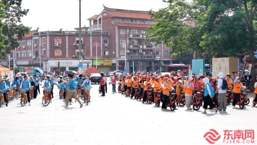 各个骑行车队集结准备发车。东南网记者 杜志鑫 摄
