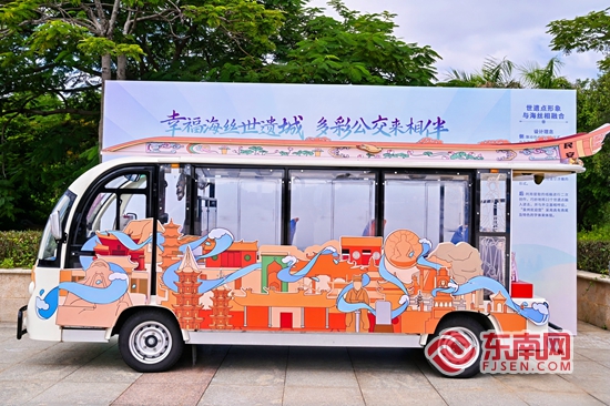 “小白”观光电瓶车上的世遗图案由华侨大学美术学院设计。泉州交发集团 供图