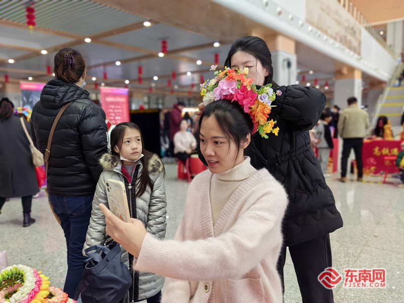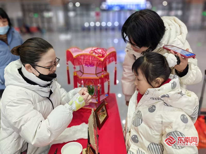 春运首日,福厦高铁泉州南站迎来出行客流。陈明 摄 东南网1月26日讯(本网记者 谢玉妹 通讯员 李楠 姚逸)1月26日,为期40天的2024年春运拉开序幕。泉州铁路各大站点人流如织,各处张灯结彩,年味渐浓。 这是福厦高铁开通运营后迎来的首个春运。蟳埔簪花围、珠绣、彩扎、木雕、梨园戏、木偶戏……春运首日,丰富多彩的泉州非遗项目齐聚泉州南站,为热闹繁忙的春运增添了一抹亮丽动人的色彩。 在琳琅满目的非遗集市上,非遗传承人用精巧的技艺、生动的语言,与旅客面对面交流展示。头发系上红绳,盘于脑后,穿上一支骨髻,再精心挑选色彩鲜艳的花朵,扎成整齐的花环戴在脑后……短短几分钟时间,非遗传承人黄晨就在旅客头上装扮出了一个春意盎然、鲜艳芬芳花园。“没想到在高铁站能遇见泉州非遗,带给我沉浸式体验,感觉非常精彩,让我回家的路程都有了不一样的感觉。”三明人王婧涵惊叹。 候车室内,一场喜气洋洋的“平安春运、有序春运、温馨春运,让旅客体验更美好”主题活动正在进行。赠春联、赠福字、赠龙年公仔……铁路工作人员、志愿者们把美好祝福寄托在一件件小礼品上,送到旅客们的手中,陪伴旅客踏上温暖回家路。 “平时坐车都是匆匆忙忙的,这次提早一点来车站,没想到竟然有惊喜。”晋江人苏女士带着放寒假的孩子准备到合肥、长沙等地旅游,刚到泉州南站,就感受到了浓浓的新春氛围,“孩子对这些非遗文化很喜欢,平时学校比较少接触到,趁此机会扩宽视野,学习和传承传统文化,挺好的。” 这个冬天,东北旅游“火出圈”,在泉州生活的辽宁人宋女士也带着孩子回乡过寒假。“家人都在东北,想着回去团聚,不然泉州的新春氛围挺好的,很热闹,气候也很好,我们都很喜欢。”宋女士认为,非遗集市不仅让大小旅客学到了非遗的知识,也带来了泉州的暖意。 泉州南站站长李景隆感慨道:“泉州从一条铁路线到现在的四条铁路线,从一座客运站到现在的十座客运站,从哐铛作响的‘绿皮车’到风驰电掣的‘复兴号’,高铁越开越快,旅客朋友回家的路越来越近,泉州非遗文化也越传越远,我真是骄傲又自豪。” 记者从漳州车务段获悉,2024年春运,漳州车务段预计发送旅客270万人次。探亲流、学生流、务工流、旅游流叠加,呈现总体高位运行和节前相对平稳、节后相对集中的特点。 据泉州南站副站长童睚鹏介绍,春运期间,泉州南站针对客流情况,加开七趟列车,其中上海虹桥到厦门方向的往返列车有四趟,从厦门到泉州南、福州南方向的列车有三趟。同时,增开服务台并安排60名志愿者为旅客提供咨询服务和帮助。春运首日,泉州南站的客流量为日均6000-8000人,预计春节前四天将迎来春运客流高峰,节后客流高峰则为初七至初九和元宵后。 为做好旅客服务的“最后一公里”,泉州南站积极沟通地方公交部门,增开车站和景点、乡镇间的接驳公交,新增十个候车室免费充电点,让旅客出行更加温馨有序。 _ueditor_page_break_tag_
