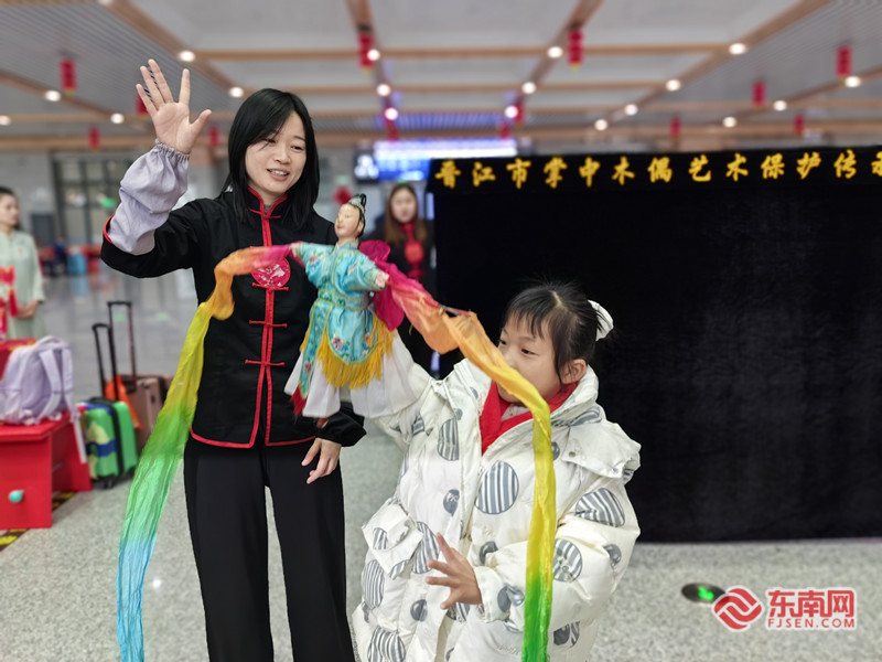 旅客体验掌中木偶。东南网记者 谢玉妹 摄 _ueditor_page_break_tag_