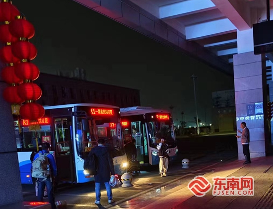 泉州动车站,凌晨接驳乘客的公交车。泉州市交通运输局 供图