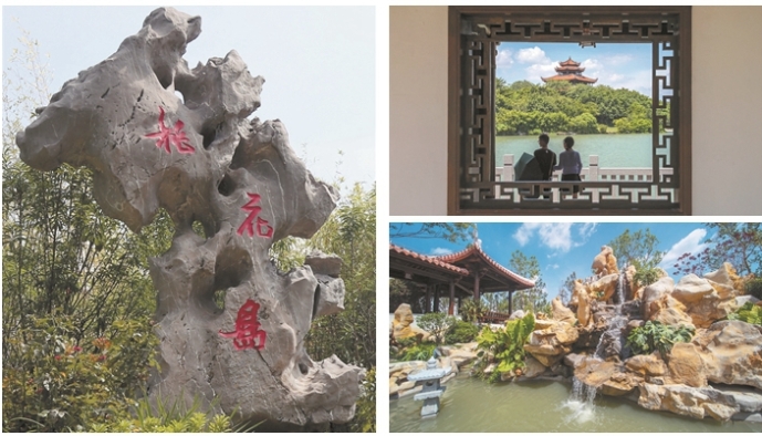 ■记者 李心雨 林福龙文 陈起拓图 灼灼桃夭,十里芳华。泉州西湖公园桃花岛昨日正式对外开放,古城再添一处闽南建筑风格的水上古典园林景观! 桃花岛位于西湖东侧水域,占地约30亩。该项目被列为2019年泉州市重点项目,从开工到完工历时1年精耕细作。如今的桃花岛已成为一座“人文绿岛”,与刺桐阁交相辉映,它的建成进一步丰富了西湖公园的文化底蕴。 桃花岛为湖中岛,建设过程采用生态的闽南园林营造手法,以绿色生态环境为基底,通过在林中巧妙安排亭、台、楼、廊等园林建筑,植入名人诗词题刻、楹联匾额等,营造自然生态的闽南特色园林。 植物造景方面,桃花作为主题植物在岛上随处可见,近千株桃树或成片栽植,或点缀于庭院,凸显桃花岛主题。 古建营造方面,建筑布局全面采用闽南传统建筑营造方式,以闽南传统民居中的厝为主要建筑形体,由极具闽南特色的山墙面“牵手规”做法演绎形成连绵起伏的山水形态。 文化植入方面,在岛上石牌坊、铭石、亭廊轩榭、古建筑植入名人诗词题刻、楹联匾额,丰富桃花岛文化内涵。例如:太湖石铭牌景石题字“桃花岛”,选自张瑞图(明代书画家、泉州晋江人)书法作品,“春草堂”匾文则出自左宗棠。 |