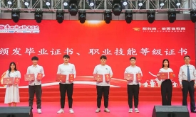 毕业典礼上,学校表彰优秀毕业生、优秀学生干部、优秀团员、优秀团干部。张逸 摄 东南网6月22日讯(本网记者 陈诗婷)骊歌声起,又是一年一度的毕业季,6月21日,泉州轻工职业学院举行2022年毕业暨职业启航典礼,学子们正式告别“象牙塔”,准备步入社会。疫情之下,学校采用“线下+线上”的方式,送别3510名毕业生,其中,“二元制”毕业生1706人、国际毕业生61人(马来西亚国际毕业生45名、越南国际毕业生15名、柬埔寨国际毕业生1名)。据悉,这是该校办学史上毕业生数量最多的一届。 当天,泉州轻工职业学院副校长黄重成宣读准予2022届学生毕业的决定,泉州轻工职业学院校长林松柏为毕业生代表颁发毕业证书、职业技能证书。同时,学校表彰优秀毕业生、优秀学生干部、优秀团员、优秀团干部。智慧制造学院副教授何燕阳作为教师代表发言,她鼓励同学们不断学习,坚持努力,实现人生的梦想。 “三年来,同学们秉承‘明道、励学、笃行’校训精神,践行群教育被需值教育理念,积极学习、勤于实践、成群乐群,学会学习、学会交往、学会生活、学会工作,努力成长成才的样子让我印象深刻。”林松柏说,三年来,同学们参与、创造、见证了学校成为福建省示范校、双高校和教育部现代学徒制试点校、国家级高技能人才培训基地和10年办学成果展等系列办学成就。“学校很欣喜地看到你们成为了更好的自己,也成为了更多人的骄傲。”
