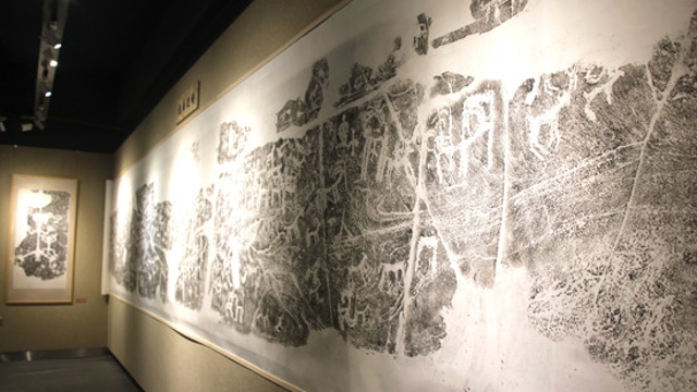 韩美林从岩画中汲取灵感所创作的《动物水墨》。东南网记者 谢玉妹 摄 据了解,此次展览分别从“远古艺术的魅力”“现代艺术的继承”“文化艺术的衍生”三个单元,展示了先人创造的文化艺术奇迹和现代的保护、传承。展出了80多幅(件)反映远古人类放牧、狩猎、祭祀、自然崇拜、图腾崇拜、祖先崇拜等文化内涵的贺兰山岩画拓片、岩画石以及著名画家韩美林以岩画为素材创作的绘画艺术作品和岩画文创品。 其中,最引人注目的是10米岩画拓片,画卷上密集分布着各种动物和人物符号,非常震撼。韩美林岩画艺术作品以远古岩画为创作题材和灵感,用现代的审美进行创造,让古老和现代、传统与时尚延续和发展,形成独具“美林风”的岩画艺术。 “希望通过展览的方式让石头上的文化活起来,让泉州人民了解贺兰山文化遗产,并从中汲取灵感。”泉州华侨历史博物馆馆长林鹰告诉记者,此次展览既是博物馆“喜迎二十大,欢度国庆佳节”的一项重要活动,也是泉州市民的一场塞上风情文化盛宴。市民可从中领略贺兰山岩画文化遗产的魅力,感受其新时代意义和价值,进而增强文化自信,坚定实现中华民族伟大复兴中国梦的信心和决心。