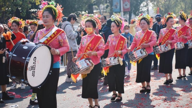 蟳埔女打着鼓、敲着锣。东南网记者 林婕 摄 东南网2月19日讯(本网记者 林婕)2月19日上午,蟳埔“天香”巡境民俗文化展示活动举行。今天是农历正月廿九,每年的这一天,蟳埔社区都会迎来妈祖“天香”巡境活动。这一天,蟳埔女扎起簪花围,沿着丰海路踩街,进行一系列民俗表演活动。