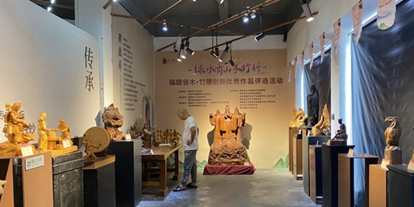 活动现场。陈峻峰 摄 此次创新优秀作品展以“绿水青山木竹新”为主题,吸引了福州、莆田、厦门、泉州、宁德、三明等地的木、竹工艺制作从业人员、工艺美术大师等积极参与。在展览现场,共有100多件优秀作品参展,为文化艺术界人士和木竹雕艺术从业者、收藏者们带来一场交流、探讨的文化盛宴。 “今天是老师组织我们过来看展,第一次看到这么多样式的雕艺作品,每件看了都觉得非常有灵气,让我很震撼,雕刻艺术体现着人与自然的和谐共生,积淀着深厚的艺术内涵,通过这次学习交流,相信对我们以后的专业学习会有很大帮助。”福州大学厦门工艺美术学院学生黄杰说道。