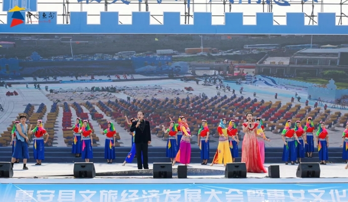 启动仪式。邓文祥 摄 东南网9月28日讯(本网记者 林杰)为打造最具烟火气旅游城市、世界海丝多元文化旅游目的地,搭乘省市文旅产业发展浪潮,9月28日上午,“最美海岸 风情惠安”惠安县文旅经济发展大会暨惠女文化节在崇武镇文化广场盛大开幕。 泉州市政协副主席黄世界,福建省文旅厅二级巡视员苏忠明,上海音乐学院党委副书记曹荣瑞,福建省妇联党组成员、副主席(挂职)占永琼,中国诗歌学会副会长龚学敏、阿古拉泰,泉州市文旅局局长吕秀家、泉州市妇联主席骆春玲等省市领导及宁夏红寺堡区、泉州丰泽区等领导应邀参加;王春雷、庄稼祥、蒋向群、许贞丽等县四套班子主要领导及分管领导出席开幕式。现场来宾还包括惠安县合作企业及客商代表,旅游达人、网红大咖、媒体记者代表等。 大会现场,中国诗歌学会为惠安县颁发“中国诗歌之乡”牌匾。随后,举行了战略合作签约、重大文旅项目签约、惠安县文旅推荐官聘任、惠安县国家级非遗旅游线路发布等活动,还对惠安最美打卡点、崇武古城进行推介,并穿插情景表演“寻迹惠女精神”、“惠女精神”传承与守护仪式、惠女方阵合唱《惠安颂》等文艺演出,可谓是干货十足、亮点频频。 据悉,本次活动由中共惠安县委、惠安县人民政府主办,中共惠安县委宣传部、惠安县文化体育和旅游局、惠安县妇女联合会、惠安县文学艺术界联合会、惠安文旅集团承办。