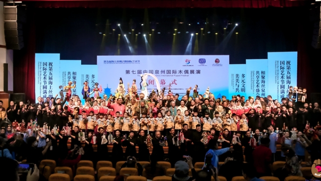 闭幕式现场。主办方 供图 东南网12月12日讯(东南网记者 林杰 “学习强国”福建学习平台记者 郑雅梅)作为第五届海上丝绸之路国际艺术节系列活动之一,12月12日,第七届中国泉州国际木偶展演闭幕式在惠安举行,为本届国际木偶展演画上圆满句号。来自国内外专家、学者,国际木偶团队的艺术家们,新闻媒体朋友和各界群众到场参加活动。 活动现场,与会的领导嘉宾为35支参演剧团颁发了荣誉证书和纪念牌,联合国教科文组织国际木偶联会与泉州市木偶剧团,国际木偶联会亚太委员会和惠安县人民政府分别签订了意向合作协议。 据介绍,来自国外的12支木偶表演团队和国内的23支木偶表演团队共近500人,在4天的时间里在泉州同时献演80多场木偶戏,而惠安作为承办方,集中展演30场剧目。木偶艺术家们深入全市各地的社区、农村、校园、广场、剧场等开展演出,为市民群众带来了一场场“家门口”的国际艺术盛宴,为世界木偶艺术交流与传承贡献力量。