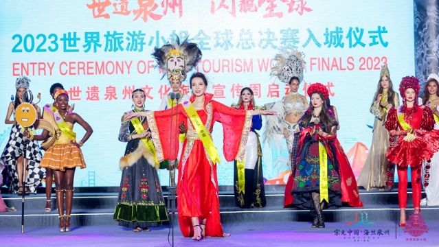 启动仪式。主办方 供图 东南网12月15日(本网记者 林杰 实习生 许娟娟)12月15日,“世遗泉州 闪靓全球”世遗泉州文化旅游宣传周启动仪式暨2023世界旅游小姐全球总决赛入城仪式在泉州举行,来自世界各地57个国家的58名世界旅游小姐冠军同台亮相。 泉州市副市长姚飞在仪式上致辞。他表示,泉州是古代中国对外贸易的重要港口,是联合国教科文组织确认的海上丝绸之路起点之一,作为世遗之城,它有着深厚的文化底蕴,在共建“一带一路”倡议的时代背景下,本次世界旅游小姐全球总决赛的举办,更是让这座古城发扬延续千年的海丝精神,继续成为连接世界的桥梁。世界旅游小姐大赛具有较高的国际知名度和影响力,是促进各国文化旅游交流合作的重要平台,相信大赛的举办,将有利加快推进“宋元中国·海丝泉州”城市品牌建设。 世界旅游小姐年度冠军总决赛组委会主席Evgenii Kanitskii(依基尼·卡尼斯基)在致辞中表示,通过本届赛事,诸位冠军选手将成为泉州的国际推广大使,向本国人民推介泉州,吸引更多的国际旅游达人来到泉州,让“海丝名城泉州”的美名享誉全球! 当天下午,各国佳丽共同乘坐当地的公交小白车,开启了独具特色的踩街巡城之旅。在泉州古城的五大特色街区,她们仿佛穿越时空尽显古城风韵,感受“世遗之城”的新生,探寻“宋元中国·海丝泉州”的缩影,向世界遗产之城——泉州致敬。 下午4时许,各国佳丽到达中国闽台缘博物馆文化广场,她们身着盛装,牵着浔埔簪花服饰的小朋友步入红毯,展现各自迷人风采,并通过现场直播镜头向全球发出邀约,寄送明信片并签署代言签名,向世界展现中国泉州的美丽风光和文化魅力。 在仪式现场,一首古雅悠远的《百鸟归巢》正式拉开了活动的序幕,58位肩负旅游文化使命的冠军佳丽,身着各自国家的传统服饰,依次登台亮相,并为泉州代言献上最真挚的祝福。 据介绍,入城仪式后,组委会还将组织进行城市采风,开展让世界寻觅泉州 City walk和让世界品味泉州“潮”等主题活动,总决赛及颁奖仪式将于12月22日在泉州举行。