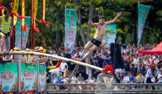 五月五,过端午。作为晋江市(安海)第十二届端午民俗旅游文化节的特色活动,安海水上“掠鸭”习俗是泉州市级非遗,是流传于安海古镇的端午节水上竞技运动,至今已有300年以上的历史。本次水上“掠鸭”竞技活动中,主办方共准备50只鸭子,吸引众多参赛者参加。