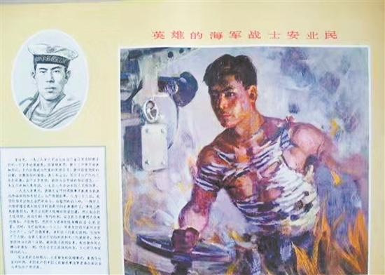 20世纪70年代歌颂英雄安业民的宣传海报 “人生总有一死,有的轻如鸿毛,有的却重如泰山。”在1958年炮击金门的战斗前夕,安业民充满革命激情在日记中写道:“人民的英雄董存瑞、黄继光,为了战斗的胜利,挺身而出,生得伟大,死得光荣……我们来前线惩罚敌人,胜利一定是我们的,在战斗中如果出现紧急关头,我一定勇往直前,毫不畏缩。”在这场战役中,安业民同志不顾个人安危,舍身保护火炮和阵地的安全,在全身被大火烧伤60%以上的情况下,忍受着常人难以想象的剧痛,坚持战斗了40多分钟,直到战斗胜利结束。 安业民,1937年8月出生于辽宁省开原县四寨子村。他出生时正值抗日战争爆发,日军的暴行使他自小就在心里埋下了对侵略者仇恨的种子。读书期间,他参加了儿童团,并担任了儿童团分队长,率领小伙伴们积极站岗放哨。新中国成立后,安业民在党团组织的教育下,思想觉悟提高很快。在成立互助组和农业合作化运动中,他积极带头,热心助人。为了帮助村里困难户摆脱困境,他在自家生活十分拮据、困难的情况下,极力说服家人勒紧裤带,将省下的上百斤粮食支援困难户,用实际行动感染了大家,坚定了走互助合作道路的信心。1956年,安业民光荣地加入了中国共产主义青年团,从此,他更加自觉主动地带领团员们为无儿无女、缺乏劳力的孤寡老人义务砍柴、收割、帮工,成为青年的好带头人和党的得力助手。 1957年1月,安业民应征入伍,成为一名人民解放军战士。他起先在福建沿海海岸炮兵某部任电话员。因工作需要,组织准备调他到工作条件较艰巨的火力炮任炮手。他二话没说,立即到新的战斗岗位报到。入伍后,安业民深感自己文化水平低,因此他凭着一股执着的求知欲望努力学习。他的全部家当除了简单的行装外,最让人羡慕的就是满满一个小柜子的书籍。整个连队里数他藏书最多,其中大部分是政治理论书籍。部队换防时要求轻装,他宁可将衣服鞋子等物品精简掉,也舍不得扔掉心爱的书籍。 为了练就过硬的军事本领,安业民无论是在寒冬腊月还是在炎夏酷暑,都勤学苦练操作要领。工作中,他兢兢业业、认真负责、一丝不苟地履行岗位职责,爱护武器胜过爱护自己。他自觉遵守革命队伍的组织纪律,坚守岗位,从不无故缺勤。有一次他患了重感冒,发高烧,战友替他执勤。病好后,他多次放弃节假日休息时间,硬是争着替战友执勤和出公差。正是在人民军队这座革命大熔炉里,安业民茁壮成长,终于成为一名优秀的海军战士。 1958年8月23日,在福建前线与占据金门岛的敌军炮战中,一颗炮弹在他们炮位上空爆炸,弹片击中火炮后面堆放的弹药包,燃起熊熊烈火,火舌扑向炮位左侧的数百颗弹头,严重威胁着火炮和整个阵地的安全。危急时刻,安业民不顾个人安危,坚守战位,机敏地把炮身向隐蔽壕转动。炽烈的火舌烧着了他的衣服,伤及脊背和胳臂,他全然不顾,以坚强的意志,忍受着烈火的燎烧,奋力转动方向盘,直到炮身转回隐蔽壕中,才跳下炮盘,滚灭身上的火焰。由于全身烧伤达60%以上,陷入昏迷。苏醒后,安业民却又坚持不下火线,再次登上炮位,准确地完成指挥员下达的每一个战斗口令,连续向敌军阵地发射炮弹,顽强战斗40分钟,直至炮战结束。后因伤势过重,抢救无效,于9月9日壮烈牺牲,年仅21岁。 在生命弥留之际,安业民还向党组织递交了入党申请书,表示要“在伤好后重返前线,狠狠地打击敌人”。根据他的遗愿,中国人民解放军海军党委追认他为中国共产党党员,并追记一等功,共青团辽宁省委授予他“模范团员”荣誉称号。1959年6月26日,朱德委员长亲笔为他题词——共产主义战士安业民永垂不朽。为永远纪念这位为国捐躯的烈士,泉州市晋江市金井镇围头村修建了安业民烈士纪念碑以及安业民烈士生平事迹纪念长廊,福建厦门修建了安业民烈士墓,安业民烈士家乡开原县四寨子村,改名为业民村,乡亦称为业民乡。 |