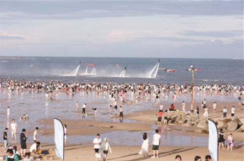 7月1日下午,石狮十里黄金海岸红塔湾旅游区正式开业。据悉,2022年11月,十里黄金海岸红塔湾旅游区项目正式生成。该项目系我市首个由国企出资、政府扶持,委托专业团队运营的文旅项目。项目一期以红塔湾为中心,延伸至军事公园、三旦岛区域,规划“海上运动项目”“商业综合运营”“营地运营项目”等三大板块内容,建设无边泳池、野奢营地等网红打卡地,整体打造集海洋运动、海岸休闲、海洋文化于一体的滨海旅游运动基地。(记者李荣鑫) |